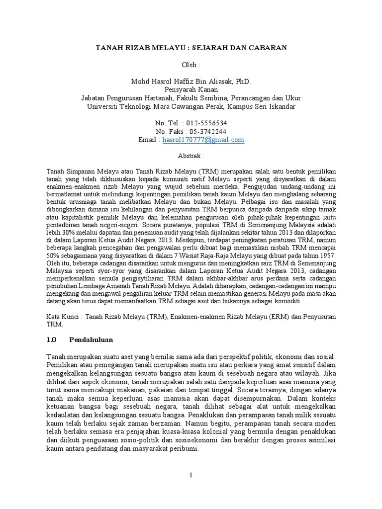 Kertas Kerja Tanah Rizab Melayu Pdf